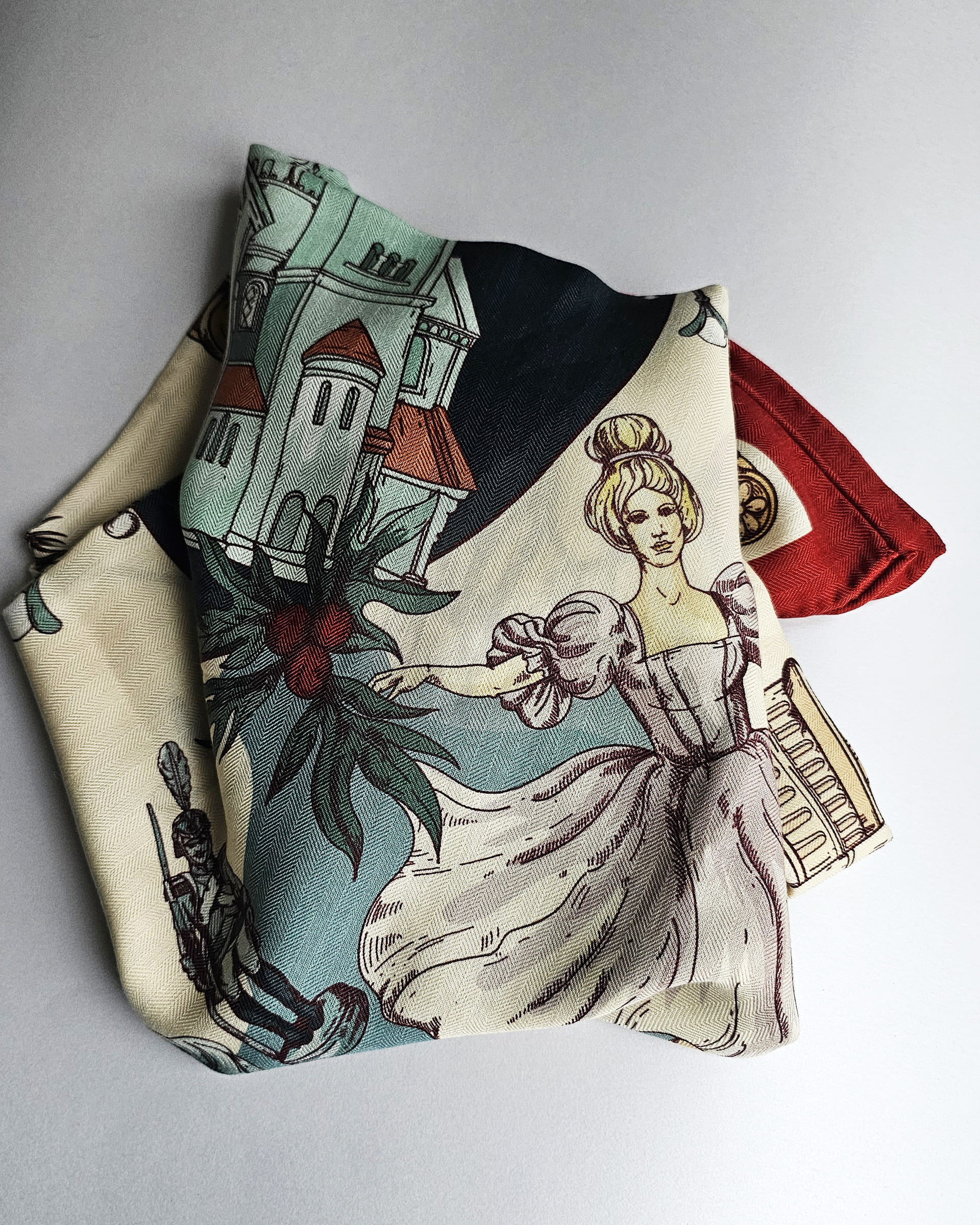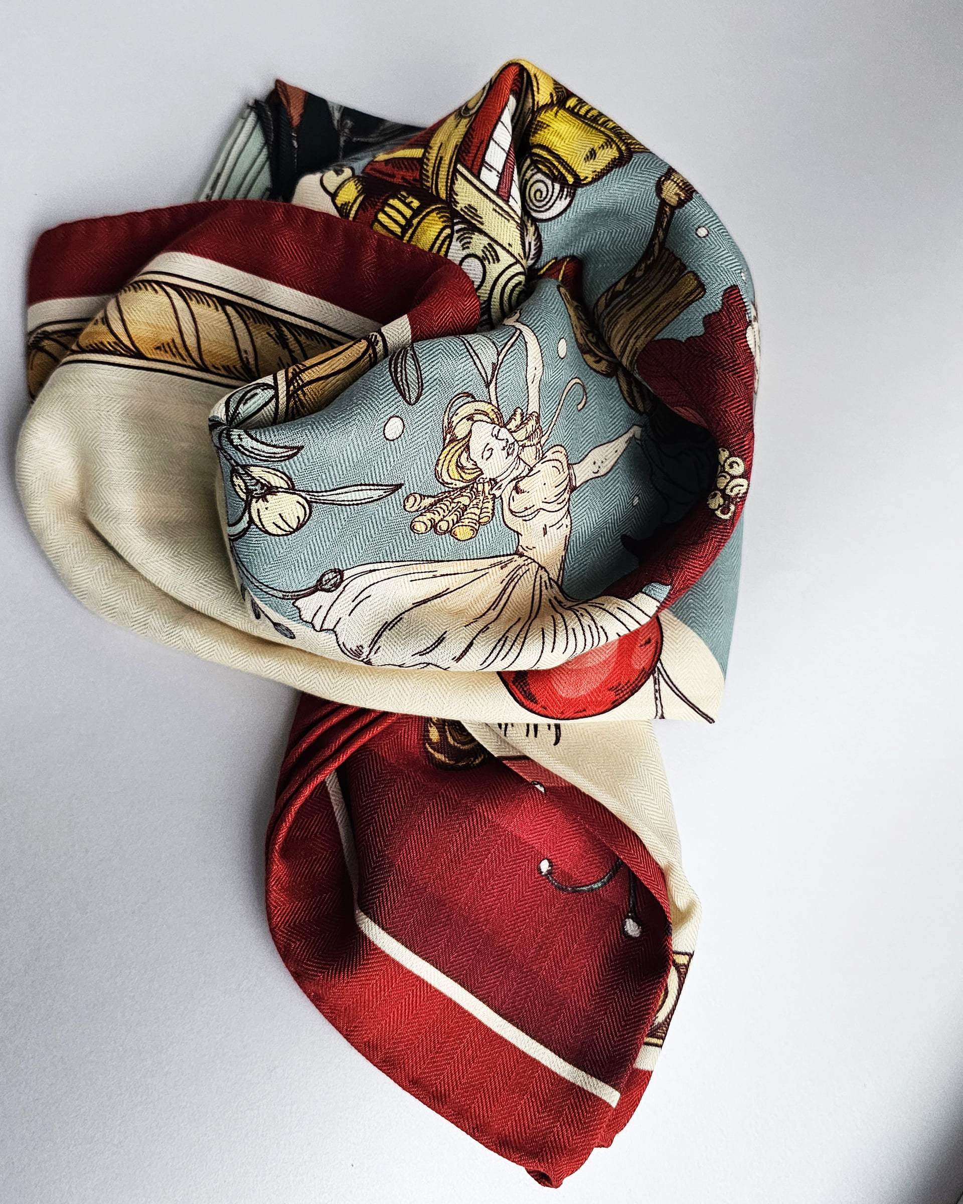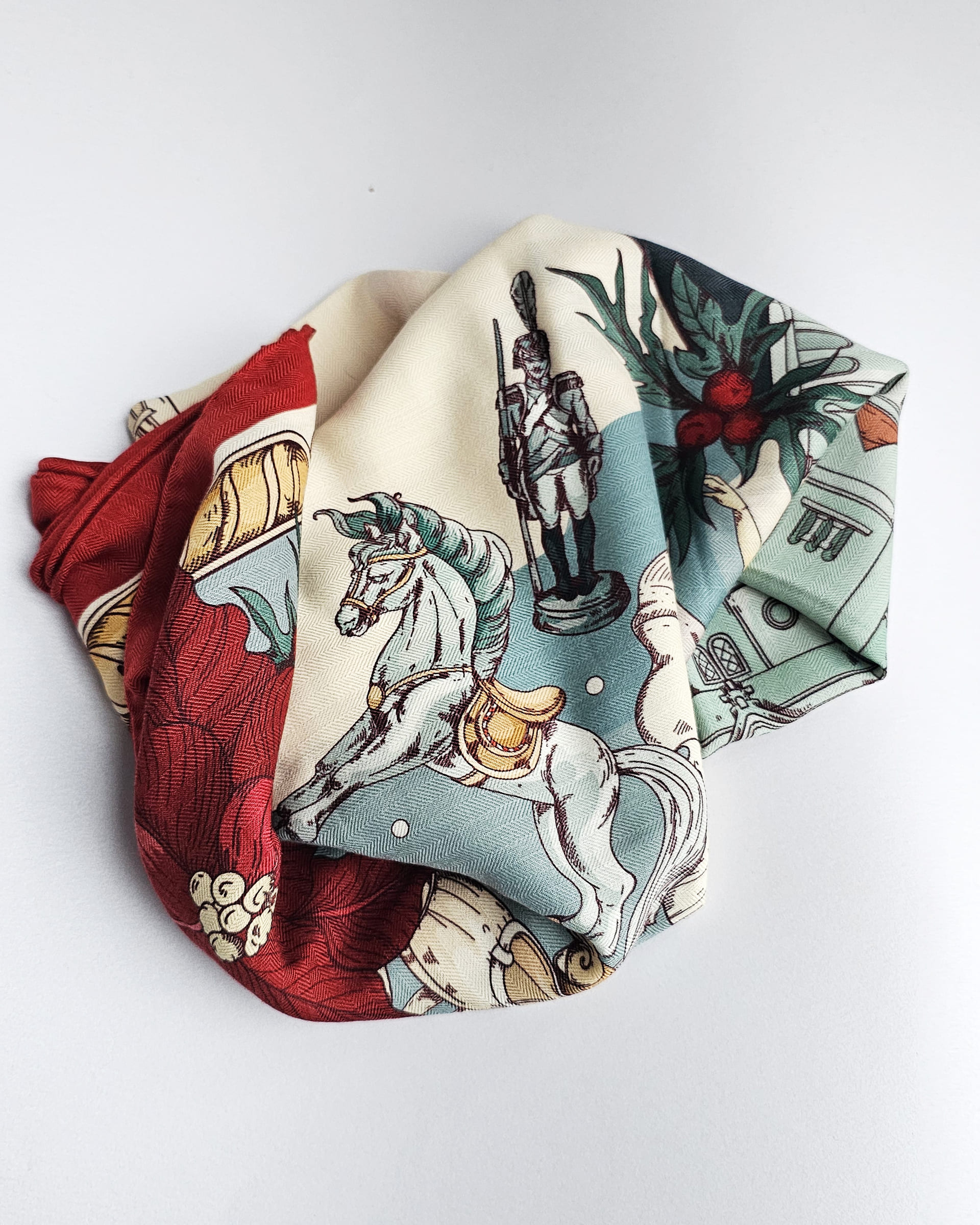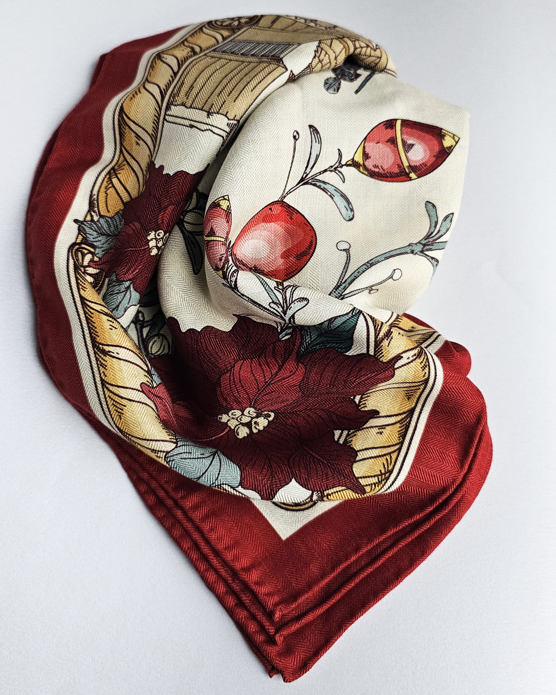 Платок «Щелкунчик светлый» (Жемчужный) (Шерсть/Шелк)