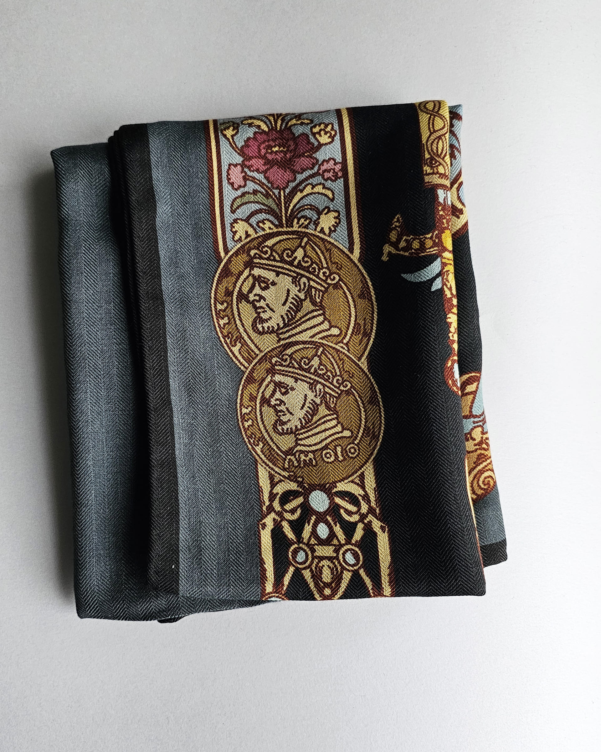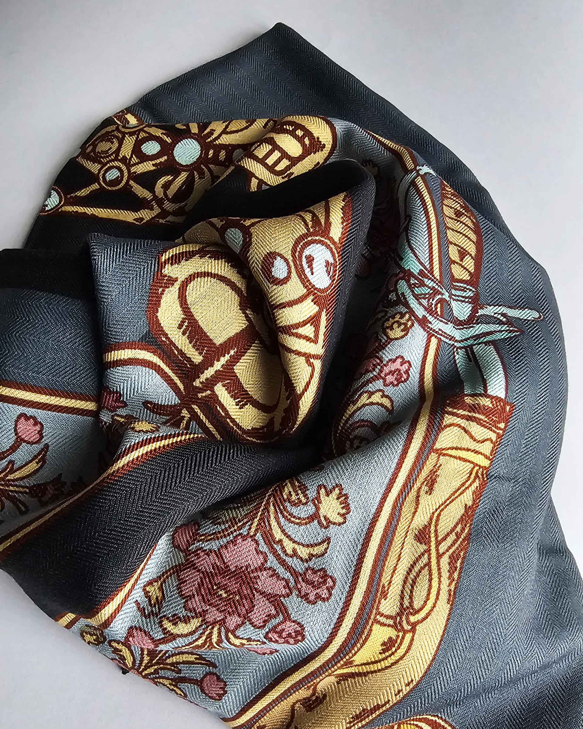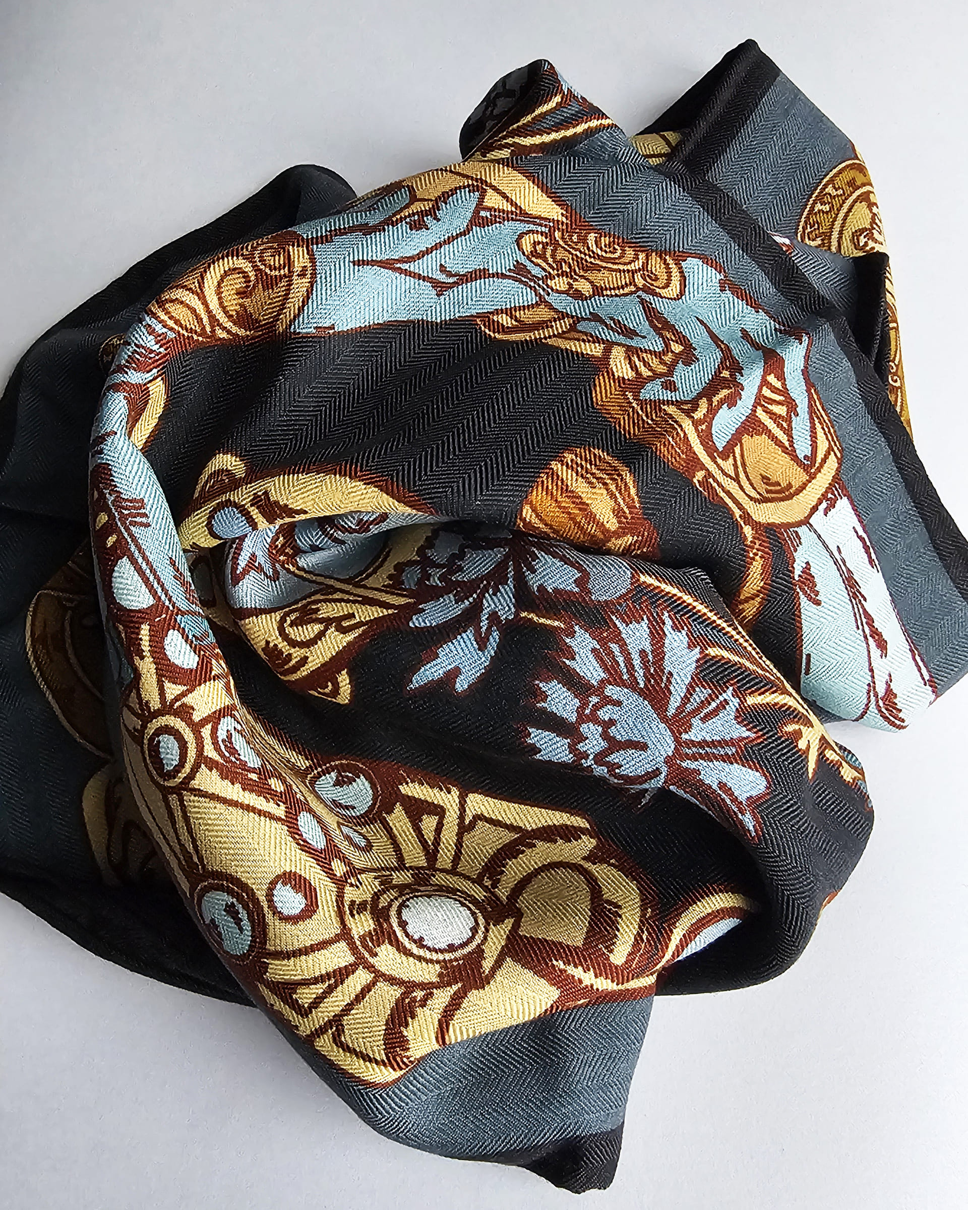 Во времена Великого Княжества Литовского слуцкий пояс, как элемент одежды, присутствовал исключительно в мужском гардеробе и был признаком знатного происхождения и высокого благосостояния владельца. До сих пор слуцкие пояса остаются национальной гордостью Беларуси. Но мода на пояса осталась в далеком прошлом. Поэтому мы выбрали самые красивые элементы слуцких узоров и воплотили их в мужских шарфах. Дополнили узоры старинными артефактами и создали новую красивую историю для современных мужчин.
